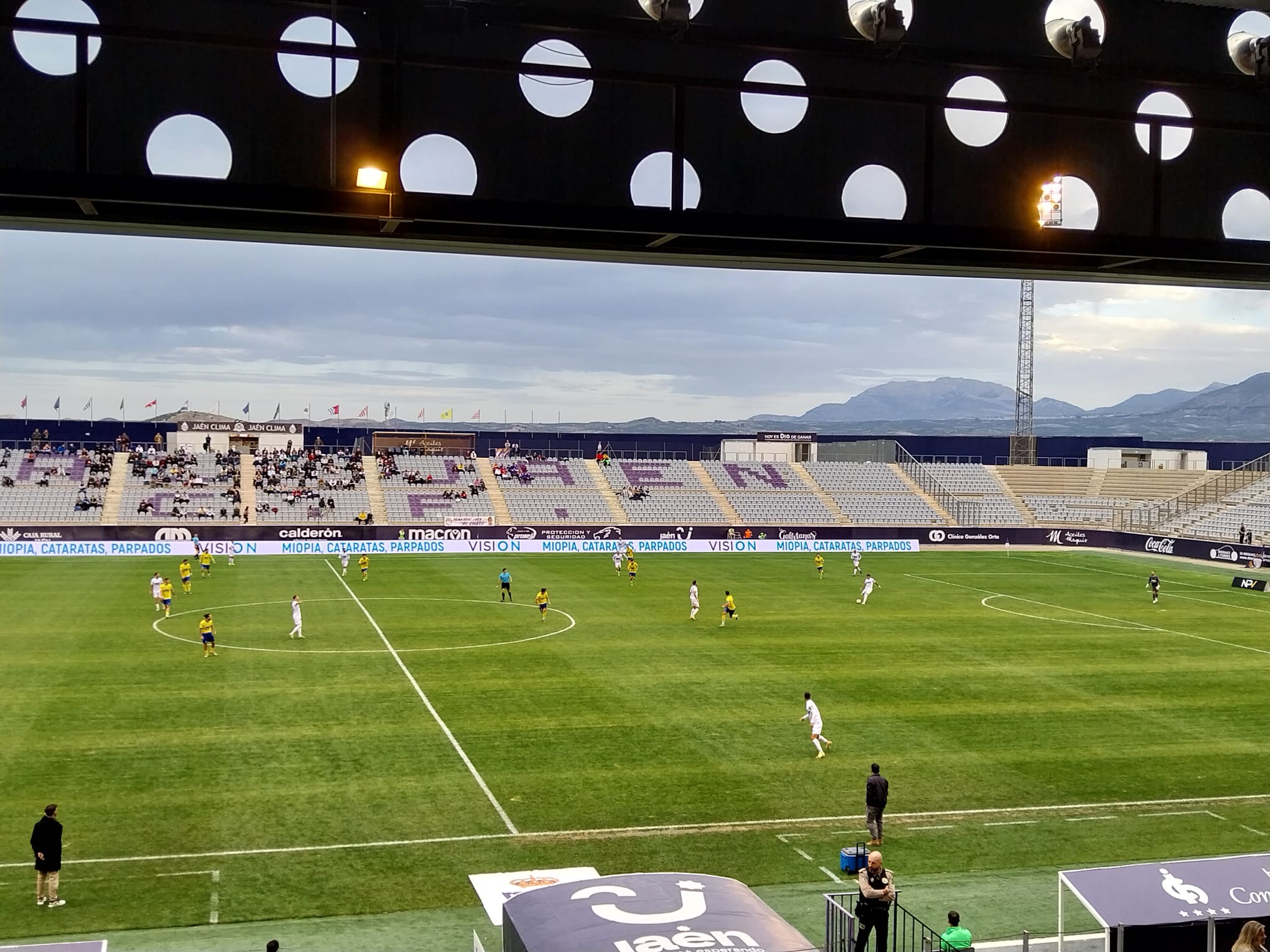 Victoria justa del Real Jaén ante un Huetor Tájar que demostró ser un equipo con recursos y aspirante al play-off ,pero que se vio superado por el equipo blanco en muchas fases del partido, en especial en la primera hora de partido, donde el equipo que dirige Roberto Peragón mostró el mejor fútbol de la temporada y donde pudo adelantarse en varias ocasiones antes del gol de Mario Martos,ya que Agus Alonso, Miguel García y el propio Mario tuvieron ocasiones claras para ello. Al descanso se llegó con el resultado de 1-0 pero con la sensación de un resultado corto,a pesar de que el Huetor tuvo una clara ocasión por medio de Utrilla que disparó al larguero.