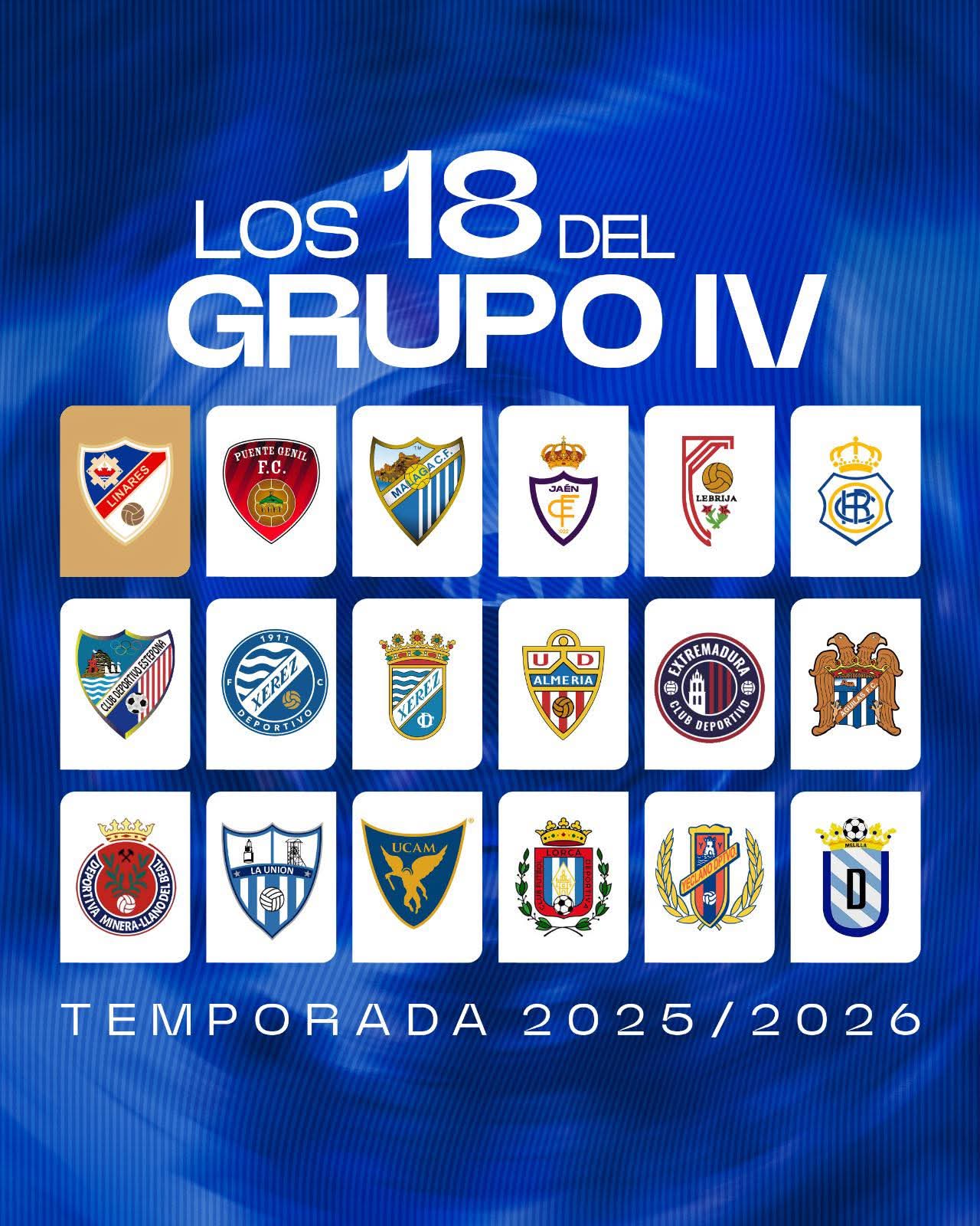 El Linares Deportivo ya conoce a los equipos a los que se enfrentará en la apasionante temporada 2025/2026 en el Grupo IV de la Segunda Federación. Serán 17 rivales más nuestro equipo azulillo, conformando un total de 18 clubes que lucharán por el ascenso.
