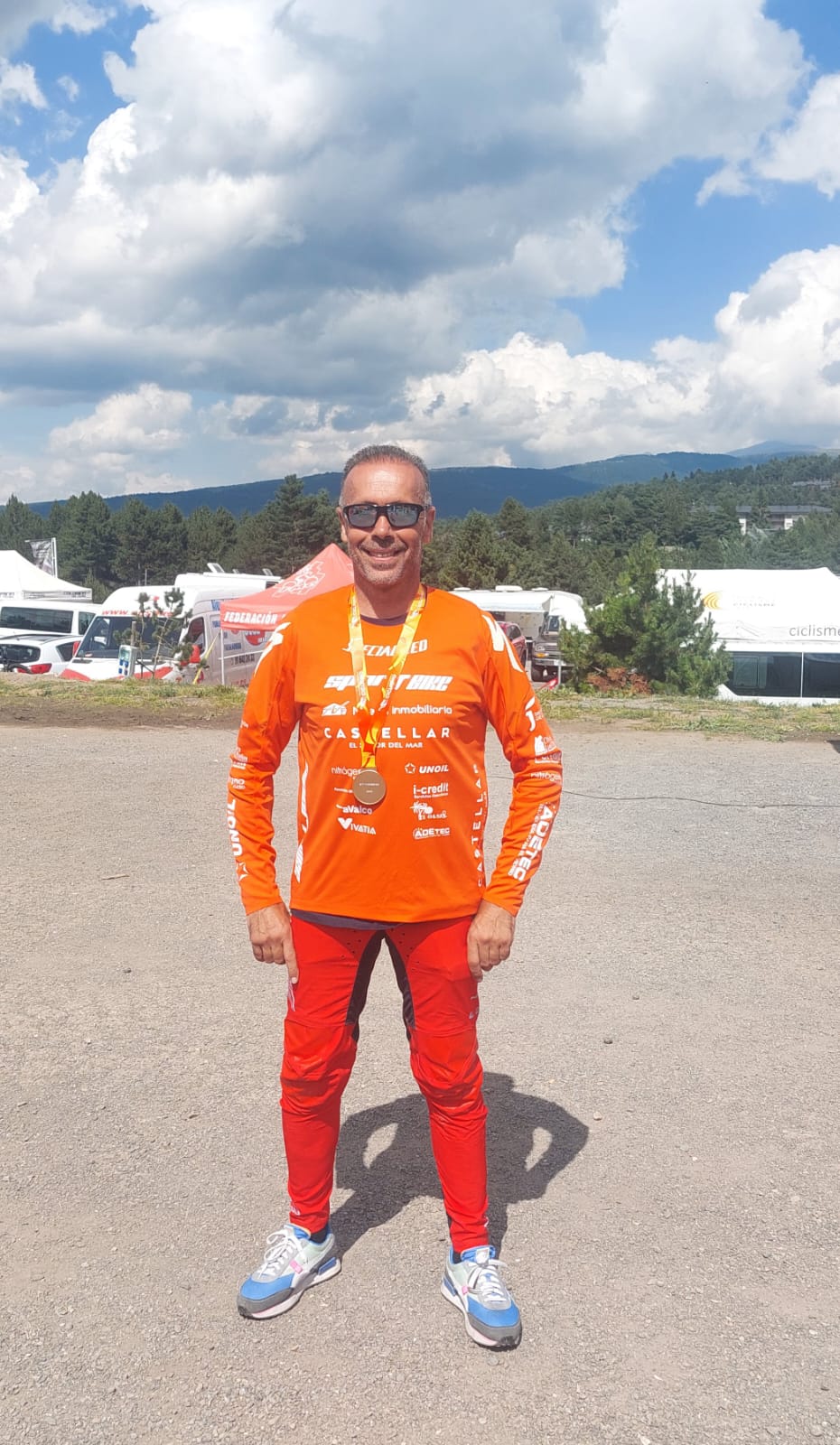Esta mañana, en el corazón de los Pirineos catalanes, el ciclista linarense Juan Francisco López Navas, conocido como Juanfran, volvió a demostrar que la pasión no conoce límites ni edad. Participó en el Campeonato de España BTT DH Descenso en la categoría Máster +50, celebrado en la estación de esquí de La Molina (Girona), y se colgó la medalla de bronce tras una emocionante y técnica competición.
