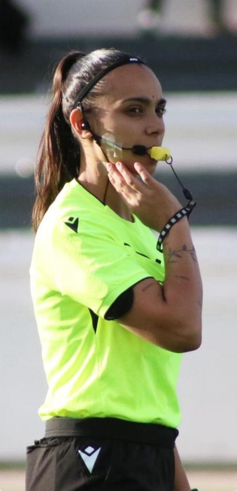 Su presencia en el campo es firme, segura, respetada. Porque Carla no solo aplica el reglamento: lo entiende desde dentro.
