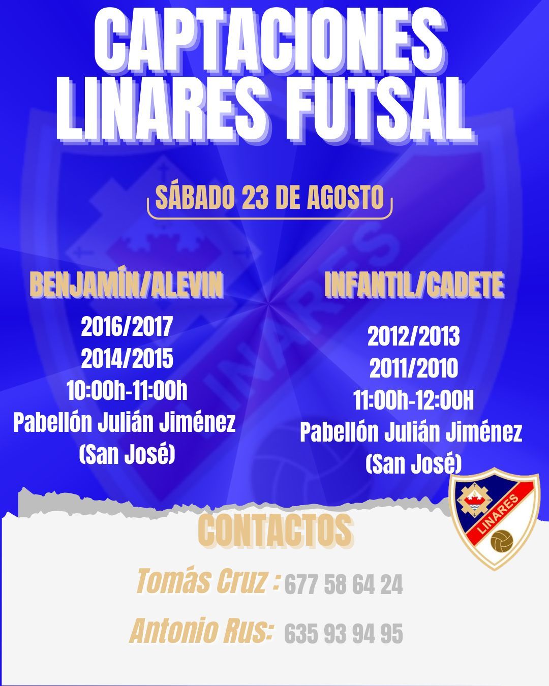 El próximo 23 de agosto, el club Linares Futsal llevará a cabo una jornada de captación de jóvenes talentos en las instalaciones deportivas de San José, concretamente en el Pabellón Julián Jiménez, con el objetivo de reforzar sus categorías base de cara a la nueva temporada.