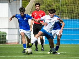 Golazo de Aitor para abrir el camino La primera mitad fue de alta exigencia táctica. Aitor, con temple y precisión, rompió el equilibrio con un disparo lejano que se coló en la portería rival. El 1-0 al descanso reflejaba la solidez defensiva y el control del juego azulillo.