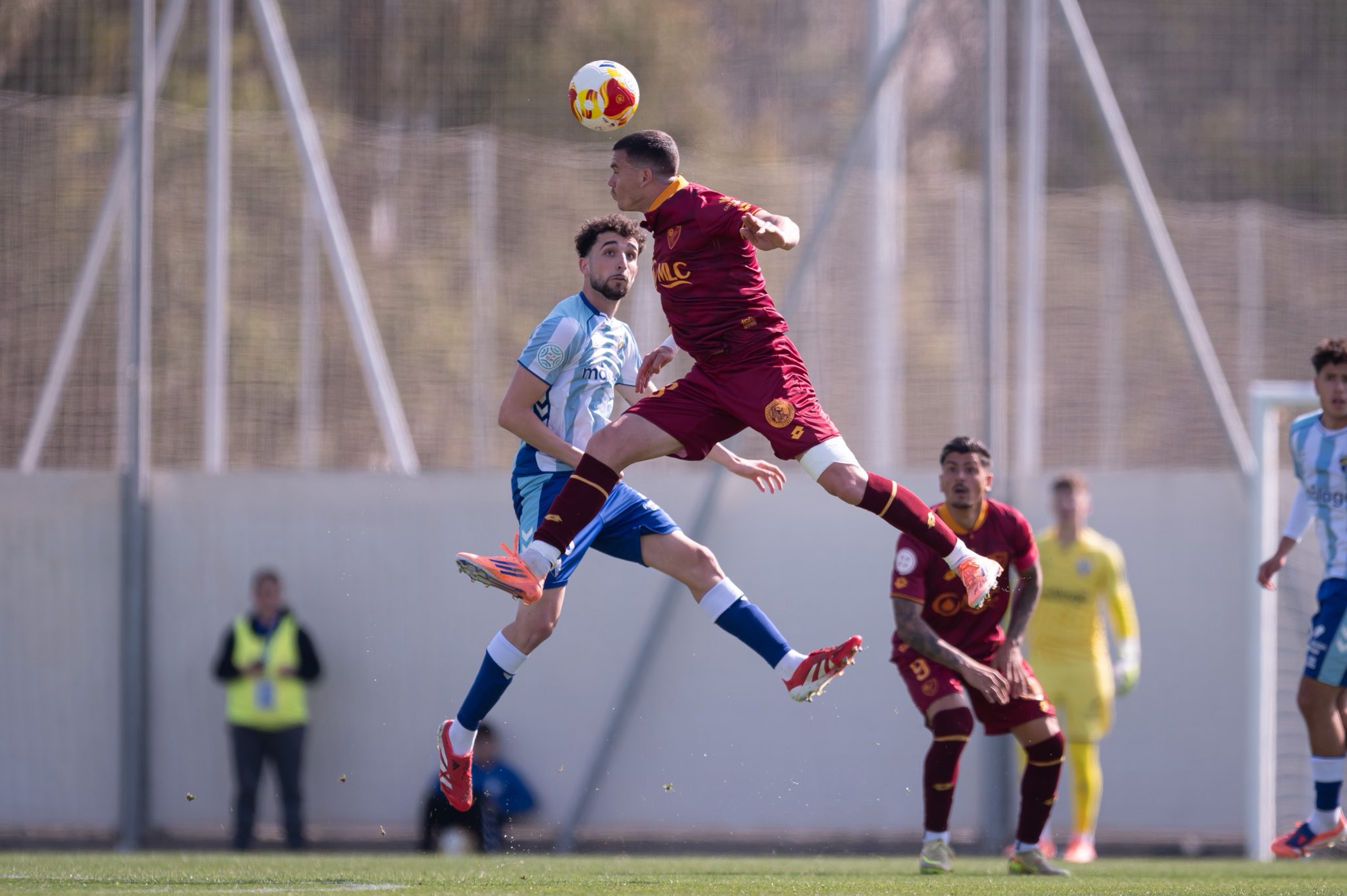 El conjunto dirigido desde el banquillo azulillo salió con determinación y avisó muy pronto. En el minuto 6, Jack Harper protagonizó la primera ocasión clara del choque tras plantarse en el área rival, obligando al meta local a emplearse a fondo con una intervención abajo para evitar el tanto. Apenas un minuto después vio la cartulina amarilla Cova, y en el 8’ Alberto Fuentes volvió a poner a prueba al guardameta malagueño con un disparo desde la frontal que encontró respuesta bajo palos.