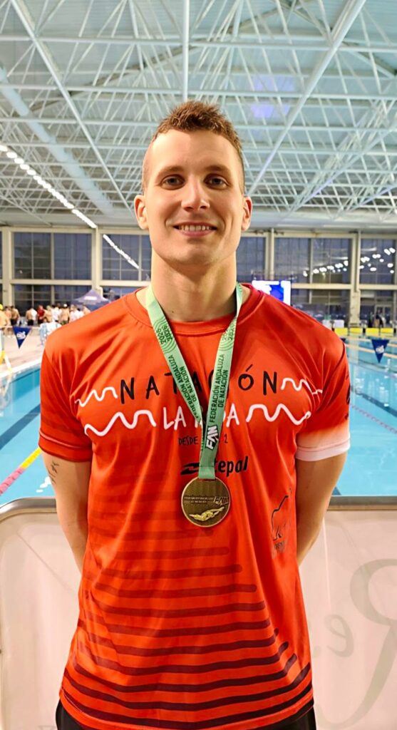 El Campeonato de Andalucía ha dejado una gran noticia para la natación, y especialmente para el club. Nuestro entrenador y nadador Javier Rivas Gallego ha logrado proclamarse campeón andaluz de los 50 metros mariposa tras una actuación brillante en la Final A disputada esta misma tarde. Compitiendo con el CPN La Roda de Albacete, Javier confirmó las buenas sensaciones que ya había mostrado en la sesión de la mañana. Desde el primer momento se le vio muy sólido en el agua, controlando el ritmo de la prueba y manteniéndose siempre entre los mejores. En una final muy ajustada y con un alto nivel competitivo, logró imponerse con autoridad y detener el crono en 24.32, un tiempo que le permitió subir a lo más alto del podio y proclamarse el mejor nadador andaluz en esta distancia. La final estuvo marcada por la igualdad entre los dos primeros clasificados, lo que hizo que la prueba fuera especialmente emocionante hasta el último metro. Sin embargo, la experiencia y la seguridad de Javier fueron determinantes para cerrar una carrera perfecta, demostrando una vez más su gran estado de forma y su enorme calidad en el estilo mariposa. Tras este importante éxito, el nadador descansará durante la jornada de mañana con el objetivo de recuperar fuerzas de cara a su próxima prueba. El domingo por la mañana volverá a competir en la preliminar de los 100 metros mariposa, donde intentará seguir firmando un campeonato sobresaliente. Sin duda, un logro muy importante tanto a nivel personal como para el club, que ve cómo uno de sus referentes deportivos vuelve a destacar en una competición autonómica de máximo nivel Noticia Patrocinada por :