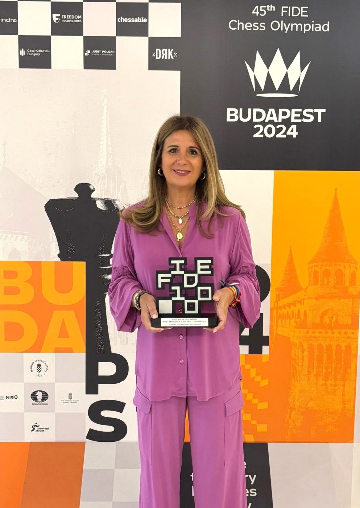 La alcaldesa recoge dicho galardón, así como el reconocimiento de Capital del Ajedrez Iberoamericano 2024, en la Olimpiada que se está celebrando en Budapest.