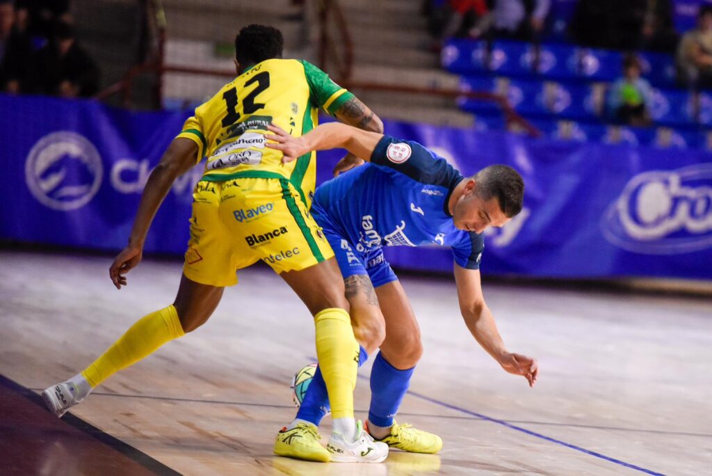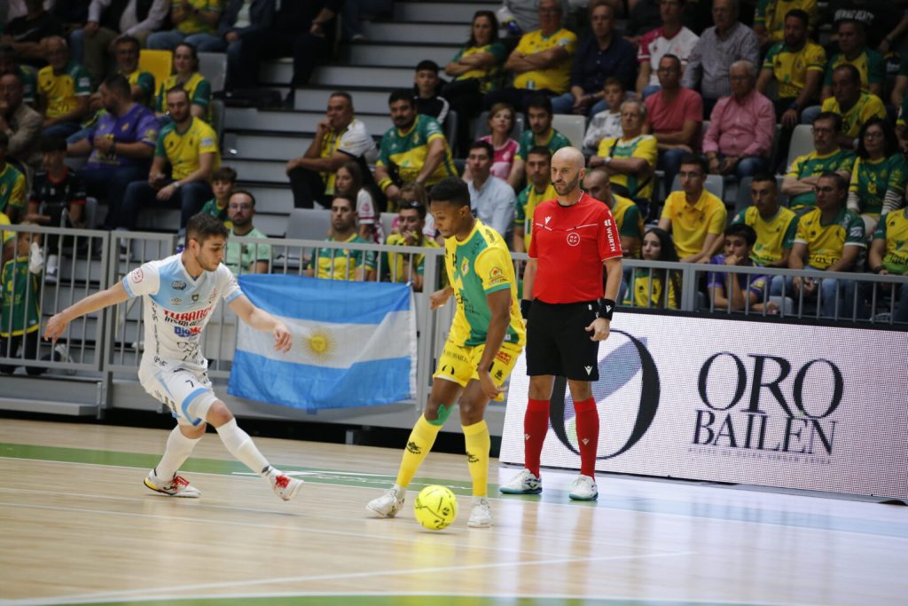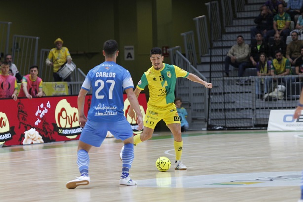 El Palacio de Deportes Olivo Arena colgó el cartel de no hay billetes en uno de los partidos de la jornada, durante los prolegómenos se produjo un minuto de silencio en memoria de los fallecidos por la Dana y por Don Vicente Tarancón, fundador de la marca Luanvi. Además, los nuestros quisieron tener un gesto con SD Aprompsi BJ21 – Jaén Paraíso Interior FS, campeones en categoría Habilidades. El míster, Dani Rodríguez, decidió repetir el quinteto que utilizó en el anterior choque ante Movistar Inter FS, enfrente estaba Viña Albali Valdepeñas que llegaba a la capital jiennense tras caer en su anterior choque, se pronosticaba un duelo de bastante nivel y con dos equipos confeccionados para luchar por todo. El partido comenzó con bastante respeto por parte de ambos equipos, los planteamientos dejaban un encuentro con poco volumen de ocasiones durante su fase inicial, la primera ocasión local llegó en el minuto 2 de juego, cuando Carlos Sanz y Alan Brandi firmaron una precisa jugada combinada que acabó con posible agarrón al crack argentino en el interior del área visitante. El juego comenzó a tener mayor velocidad y, fruto de ello cada vez eran más los acercamientos, el conjunto local se hizo con el dominio y forzó el segundo aviso mediante una bonita jugada individual protagonizada por Dani Zurdo, el disparo del jugador jiennense se marchó desviado. Durante el minuto 4 se produjo la primera rotación local, Zurdo, Lemine, Chino y Mati Rosa entraron a pista y dieron esa chispa a Jaén Paraíso Interior FS que forzó una falta, para ejecutarla entró Renato a la pista y el primer balón que tocó fue directo a la red, el internacional abrió la lata y puso el Olivo Arena patas arriba. El gol activó a los amarillos que seguían intentando abrir hueco en el marcador, Carlos Sanz lo intentó desde su propio campo y Dani Torres tuvo que intervenir para atajar un balón que se envenenó. Los azulones tardaron en conectar con el partido y gozaron de su primera ocasión clara llegado el minuto 7 de juego, cuando Lolo probó suerte desde el flanco izquierdo, disparo fue atajado por Carlos Espíndola sin problemas. El juego de toque de Jaén Paraíso Interior FS motivó el dominio local cuando la primera mitad llegaba a su ecuador, Alan Brandi parecía bastante activo en zona ofensiva y puso en aprietos al guardameta oponente tras una jugada individual que finalizó muy cerca de la meta. La respuesta de Viña Albali Valdepeñas fue protagonizada por el jugador más activo de los visitantes, Lolo se atrevió desde la altura del doble penalti y el esférico se marchó acariciando la madera. El partido parecía algo más igualado y las ocasiones eran alternas, esta vez fue un ex azulón, Alejandro Lemine la luchó y la ganó para servirla a Franklin, que desde el interior del área no acertó en la definición. La insistencia tuvo su premio y los visitantes consiguieron igualar la contienda en el minuto 13 de juego, Fernando protagonizó una jugada que supo resolver con un zapatazo cruzado y empató el choque. En cuestión de un minuto se produjo un carrusel de goles en ambas metas, la respuesta amarilla fue inmediata y nuevamente de saque de falta, esta vez fue Chino quien acertó poniendo un disparo raso en el interior de las mallas. La alegría duró muy poco a los locales que tuvieron un error de posicionamiento y Fernando ganó la espalda a la zaga oponente para concluir definiendo a media altura y poniendo así el 2-2 en el electrónico. Las fuerzas se igualaron y el partido estaba bastante equilibrado cuando entró en los últimos compases de la primera mitad, tras el carrusel de goles la sensación de peligro disminuyó en ambas áreas y los equipos decidieron mostrar un juego más de posesión y jugaron con los tiempos para ahorrarse cualquier tipo de disgusto. El último acercamiento previo al descanso tuvo como protagonista a Carlos Sanz que recuperó un peligroso esférico en área rival y la sirvió en bandeja a Chino que se encontró con un muro llamado Dani Torres, el encuentro llegó al descanso con empate a dos en el marcador y la sensación de bastante peligro en ambas porterías después de una primera mitad de bastante intensidad. Los protagonistas volvieron al terreno de juego y la jugada del partido llegó mediante una combinación a la que Franklin le puso su sello sirviendo un balón en bandeja que fue finiquitado por parte de Joao Salla para adelantar nuevamente a los locales. El tanto sentó de fábula al Jaén Paraíso Interior FS que intentó ampliar la ventaja después de una jugada perpetrada por parte de Alan Brandi, el cual no acertó en el remate. Acto seguido, llegó el empate de los visitantes, los equipos parecían ponerse de acuerdo para marcar y Fernando selló su hat trick personal aprovechando la salida de Carlos Espíndola y levantando el balón para hacerlo inalcanzable al arquero. La intensidad era máxima sobre el parqué del Olivo Arena y la necesidad de conseguir la victoria por parte de ambos era más que visible, un activo Franklin se animó y ejecutó un saque de falta directo, el balón fue taponado por el meta Dani Torres. Cuando el marcador reflejaba el minuto 6 del segundo acto, irrumpió el crack Mati Rosa para firmar uno de los tantos de la jornada después de una bonita jugada individual que saldó concretó ajustando el balón al poste derecho haciéndolo imposible para el meta oponente. El partido se cerró un poco y los minutos pasaban en la capital jiennense, mientras tanto los visitantes lo intentaron al contragolpe, pero un intenso Antoniazzi apareció como agua de mayo para frenarlo y romper así las intenciones de Viña Albali Valdepeñas. La mitad del segundo tiempo era una realidad y los visitantes cometieron la quinta falta, algo que motivó el crecimiento de Jaén Paraíso Interior FS, los locales decidieron mantener posesiones largas y hacer correr a su rival, en una de estas entró en escena Alejandro Lemine, 